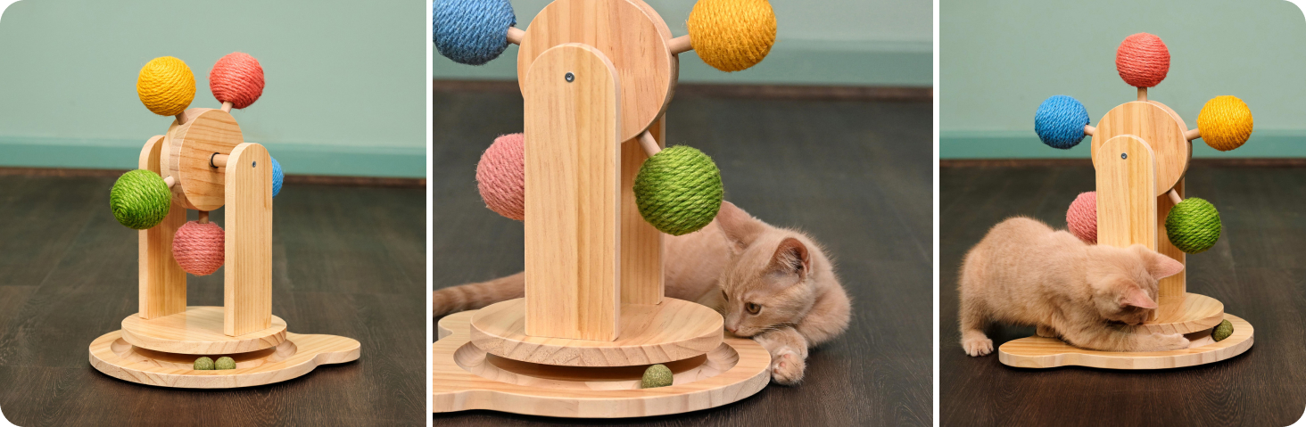Завдяки унікальній конструкції у вигляді млина, іграшка стимулює природні мисливські інстинкти кота, залучаючи його до тривалого і цікавого процесу. Використання натурального дерева та безпечних матеріалів гарантує довговічність виробу та безпеку для здоров'я тварини. Це ідеальне рішення для власників, які хочуть забезпечити своєму улюбленцю дозвілля навіть у той час, коли вони зайняті або знаходяться поза домом.